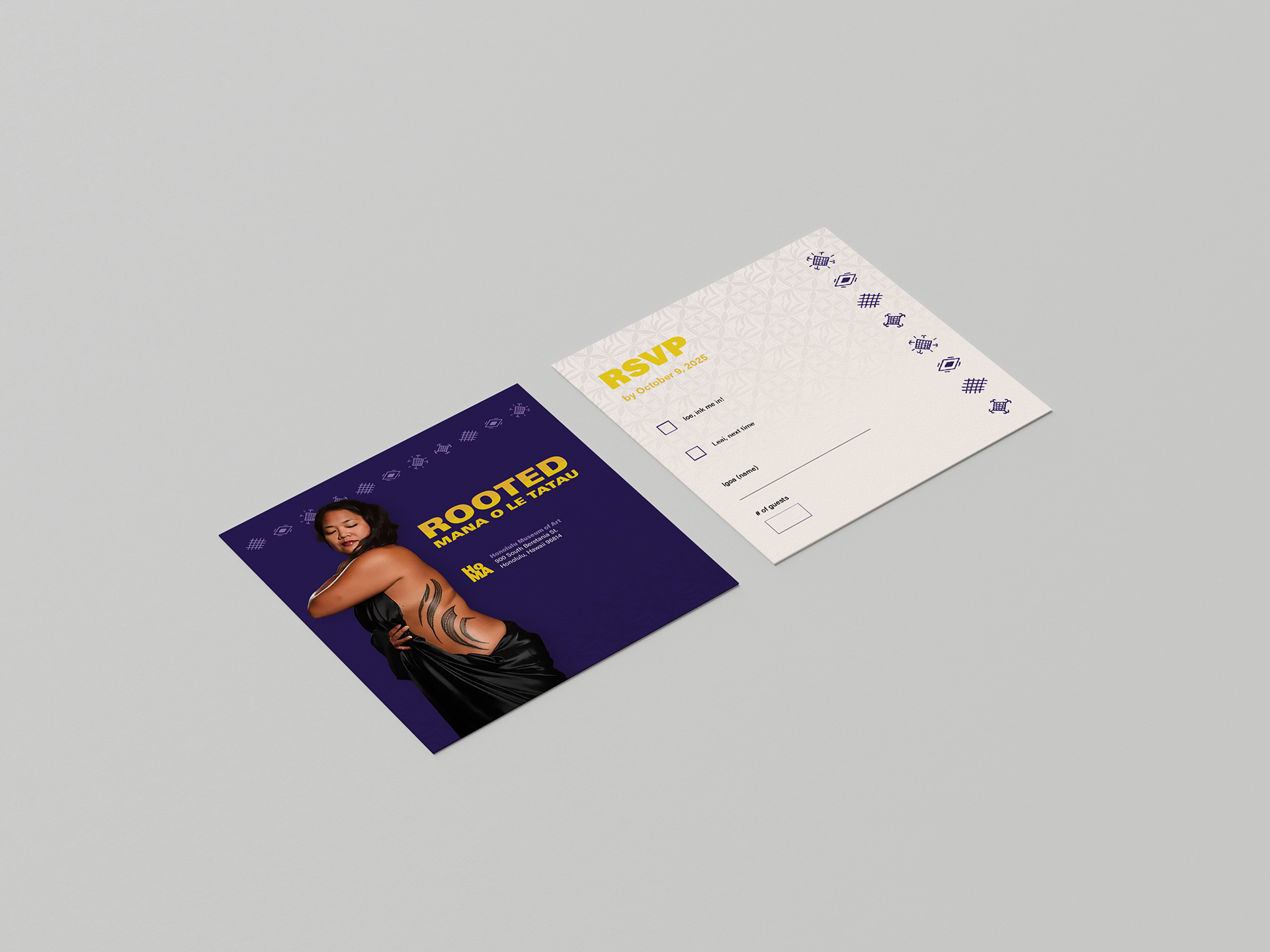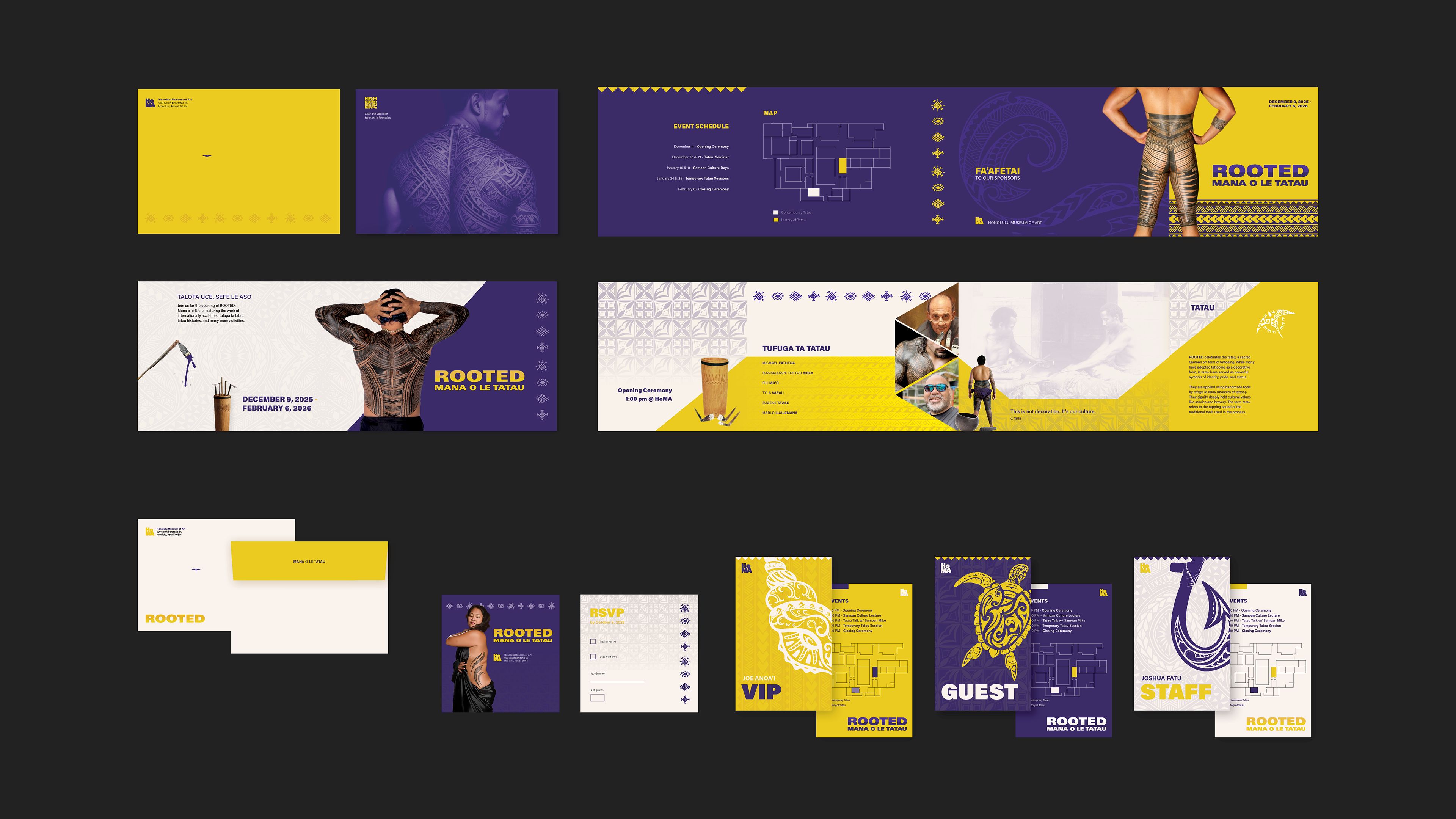 ROOTED: Mana o le Tatau is a proposed exhibition for the Honolulu Museum of Art. This exhibition celebrates the tatau, a sacred Samoan art form of tattooing. While many have adopted tattooing as a decorative form, le tatau serve as powerful symbols of identity, pride, and status. They stand as the marks of Polynesia, able to be recognized from anywhere around the world. No matter how far from home they are, le tatau will always remind those of their roots.